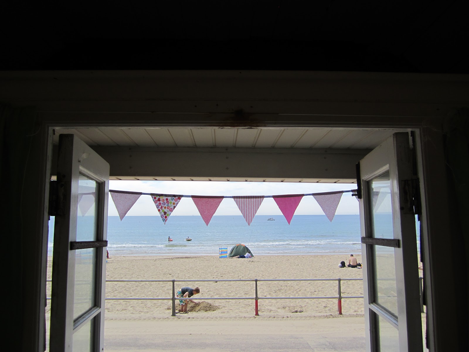 We have a beach hut booked again this year for a week, so far weather has been OK, from a sewing point of view I made some pink bunting for the ballet girls!